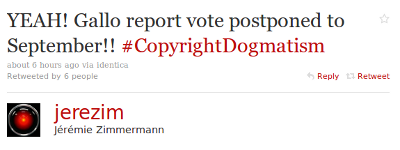 Deze week zou tijdens de plenaire sessie van het Europees Parlement in Straatsburg gestemd worden over het Gallo-rapport. Dit rapport, opgesteld door rapporteur Gallo, gaat over de toekomst van het Europese auteursrechtbeleid. De JURI-commissie van het parlement heeft het rapport in juni aangenomen, maar deze week zou het hele parlement hierover stemmen.