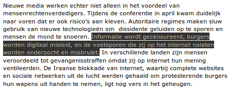 Frankrijk en Nederland slaan de handen ineen tegen internetcensuur in landen als Iran. Inmiddels is een speech van onze demissionair minister Verhagen op een conferentie in Parijs hierover gepubliceerd. De speech is inspirerend maar ook hypocriet, want Nederland wil censuur en controle in autoritaire regimes verbieden. Hoe is het in Nederland gesteld?