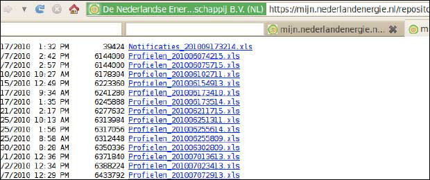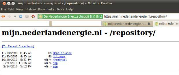 Bij de Nederlandse Energiemaatschappij was de directory “/repository” op de website Mijn Energie zo’n open directory.