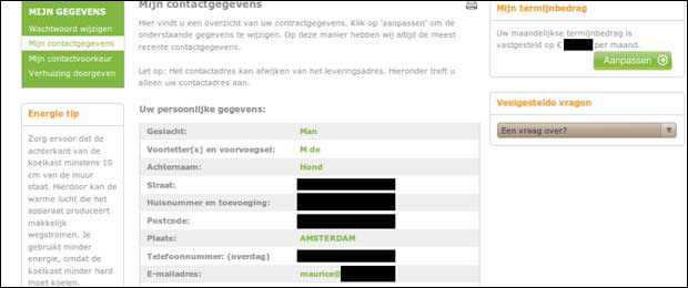 Uit de gegevens die publiek toegangelijk waren kon de persoons-, login- en factuurgegevens van de klanten achterhaald worden. De anonieme bron kon de gegevens met minimale stappen achterhalen.