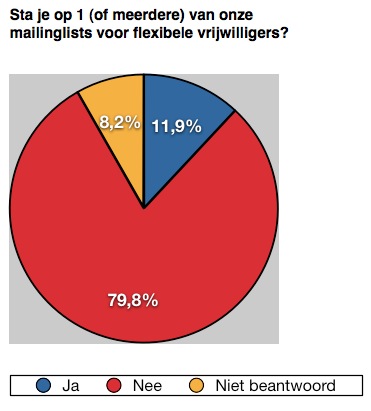 Er zijn ongeveer 250 supporters ingeschreven voor de vrijwilligers e-mail lijsten en bijna 10.000 voor de nieuwsbrief. Bijna 80% van heeft de enquête gevonden zonder mailinglist!