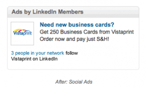 Links zie je de oorspronkelijke opzet voor de ‘sociale advertenties’, rechts de nieuwe vorm: