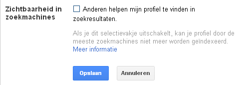 Openbare berichten op Google+ en de reacties hierop worden geïndexeerd door Google en zijn terug te vinden via de zoekmachine. Ook als je hebt aangegeven dat je profiel niet zichtbaar mag zijn voor zoekmachines, kunnen jouw reacties op openbare posts tussen de resultaten verschijnen. Wil je dit absoluut niet, dan is het verstandig om niet te reageren op openbare berichten. Bovenaan een bericht kun je zien of het openbaar is of zichtbaar is voor een beperkte groep.