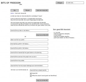 Sinds Bits of Freedom opnieuw begon in 2009, hebben honderden enthousiaste vrijwilligers contact met ons opgenomen. Tegelijkertijd krijgen we geregeld mailtjes van mensen die een leuk idee hebben om internetvrijheid te beschermen. Daar doen we nu nog veel te weinig mee. Daarom willen we een webplatform bouwen dat vrijwilligers en ideeën bij elkaar brengt: het Bit Lab. En we willen graag jouw input!