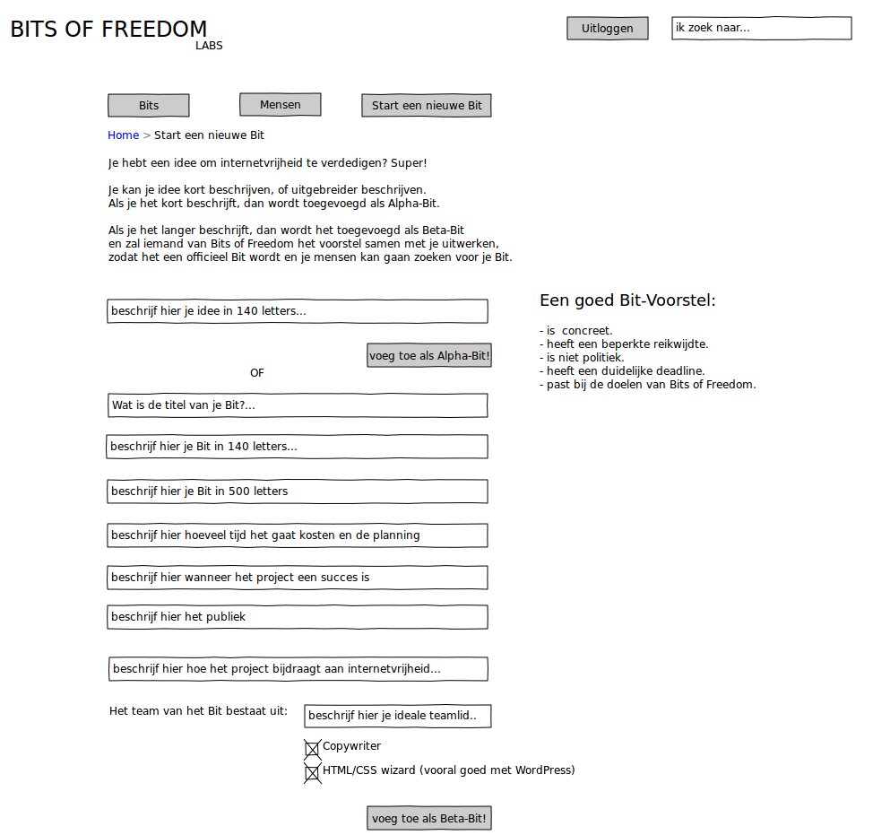 Als je klikt op “Start een nieuwe Bit” kan je een Bit voorstellen. Dat kan een alpha-Bit of een beta-Bit zijn: