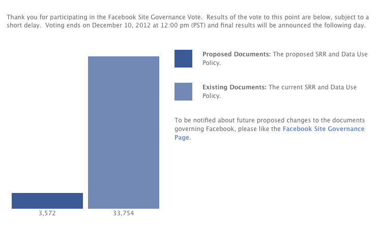 En dat is mogelijk meteen de laatste keer dat gebruikers invloed kunnen hebben op het beleid van Facebook. Als de nieuwe voorwaarden doorgaan worden dit soort inspraakmogelijkheden namelijk afgeschaft. Des te meer reden om nu een minuutje de tijd te nemen en tegen de nieuwe voorwaarden te stemmen!