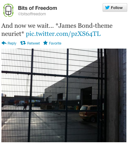 We hadden een belangrijke brief voor minister Opstelten. Een brief waarin ruim 40 internationale burgerrechtenorganisaties en veiligheidsexperts de minister vragen zijn hackvoorstel in te trekken. En omdat we graag zeker wilden weten dat Opstelten deze brief zou ontvangen, besloten we hem hoogstpersoonlijk af te leveren. Maar hoe tref je een minister zonder dat daar een strenge Haagse beveiliging of een leger perswoordvoerders tussen zit? Simpel: op een bedrijventerrein in Nootdorp.
