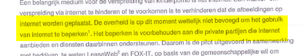 We hadden een rapport van de politie boven tafel gekregen. Daarin staat een voor de hand liggende passage: de overheid mag uitingen op internet alleen beperken op grond van een wet.