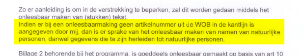 De absurditeit van het wegstrepen. En dan te bedenken dat de overheid nog meer redenen voor het weigeren van informatie wil introduceren. We schreven het al eerder: maak het ons makkelijker, dat kost iedereen minder tijd, moeite en ergernis.