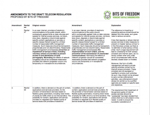 Tegelijkertijd is Bits of Freedom actief in Europa: vorige week hebben wij en een aantal voorstellen gedaan om het wetsvoorstel van de Europese Commissie te verbeteren. Deze sturen we aan Europarlementariers omdat zij het recht hebben om wijzigingen in te dienen. De komende maanden zullen we actief parlementsleden gaan benaderen om ze te overtuigen van het nut van écht neutraal internet. Lees onze voorstellen hieronder: