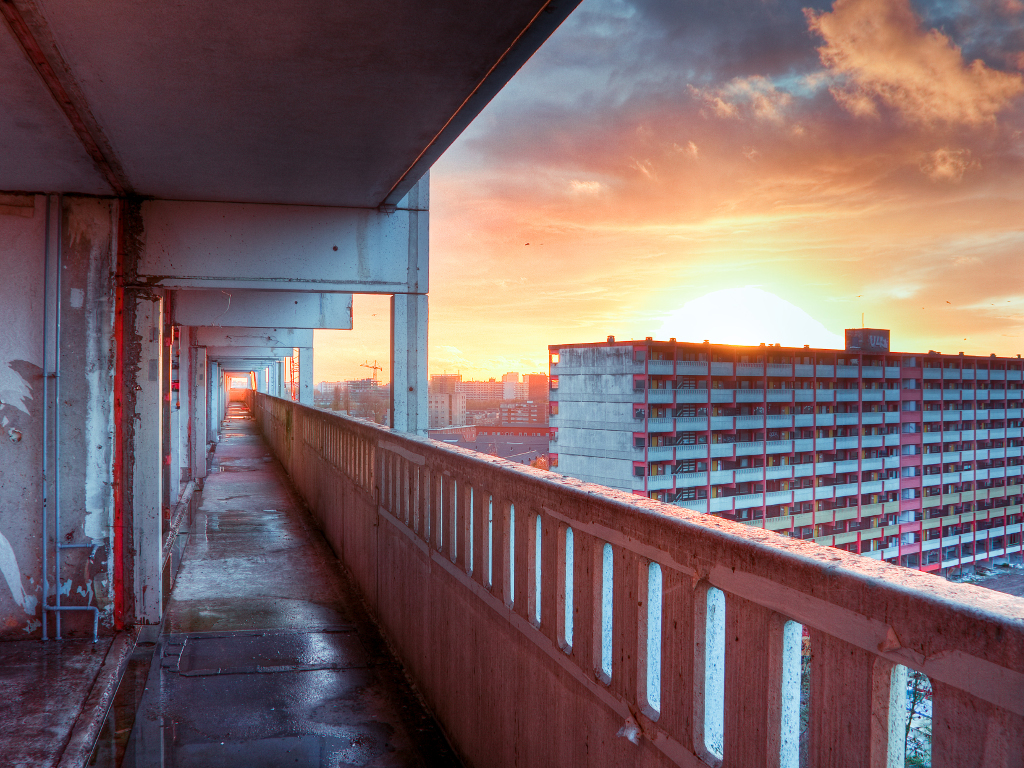 Om dat te doen beginnen we in de Bijlmer. Voor mij staat deze foto symbool voor het geloof in de maakbaarheid van de samenleving dat ten tijde van het bouwen van de Bijlmermeer, eind jaren zestig/begin jaren zeventig, bijzonder hoog was. Het stedelijk ontwerp van de Bijlmer was gebaseerd op het concept van de ‘functionele stad’. Het ideale ontwerp voor een ideale maatschappij was een radicale scheiding van de functies wonen, werk en vrije tijd. De hoogbouw, zo neergezet dat elke woning ruim voldoende zon kreeg, moest in een groen parklandschap neergezet worden. Het autoverkeer moest op verhoogde dreven gescheiden worden van voetgangers en fietsers.