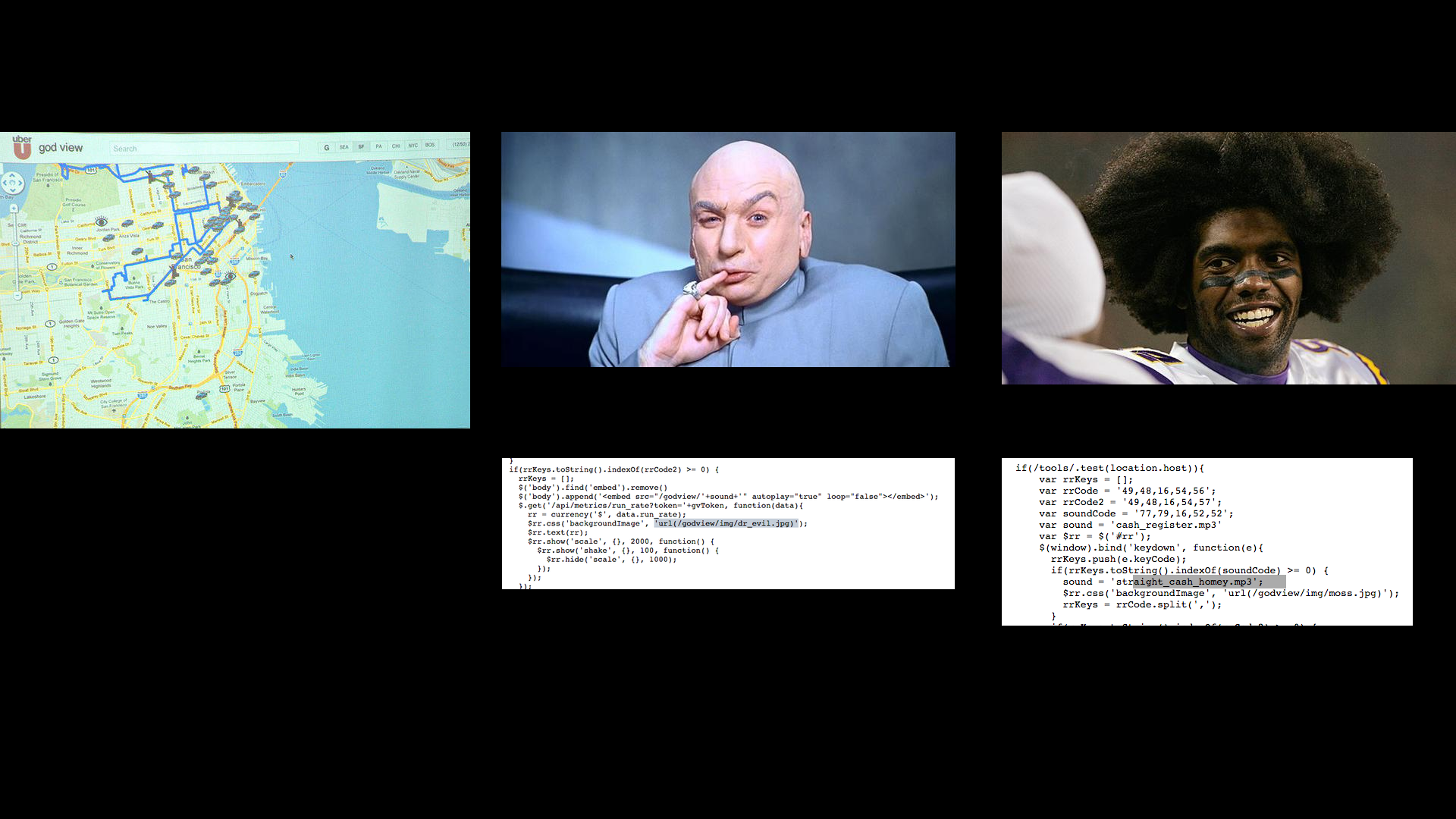 Iedereen die weleens met ‘brogrammers’ heeft gewerkt weet dat ‘god view’ het type hyperbool is dat bij deze cultuur hoort. We hoeven ons dan ook geen zorgen te maken over de aanwezigheid van een plaatje van ‘Dr. Evil’ of het geluidseffect ‘Straight Cash Homey’ in de broncode van ‘god view’. Dat hoort er gewoon bij.