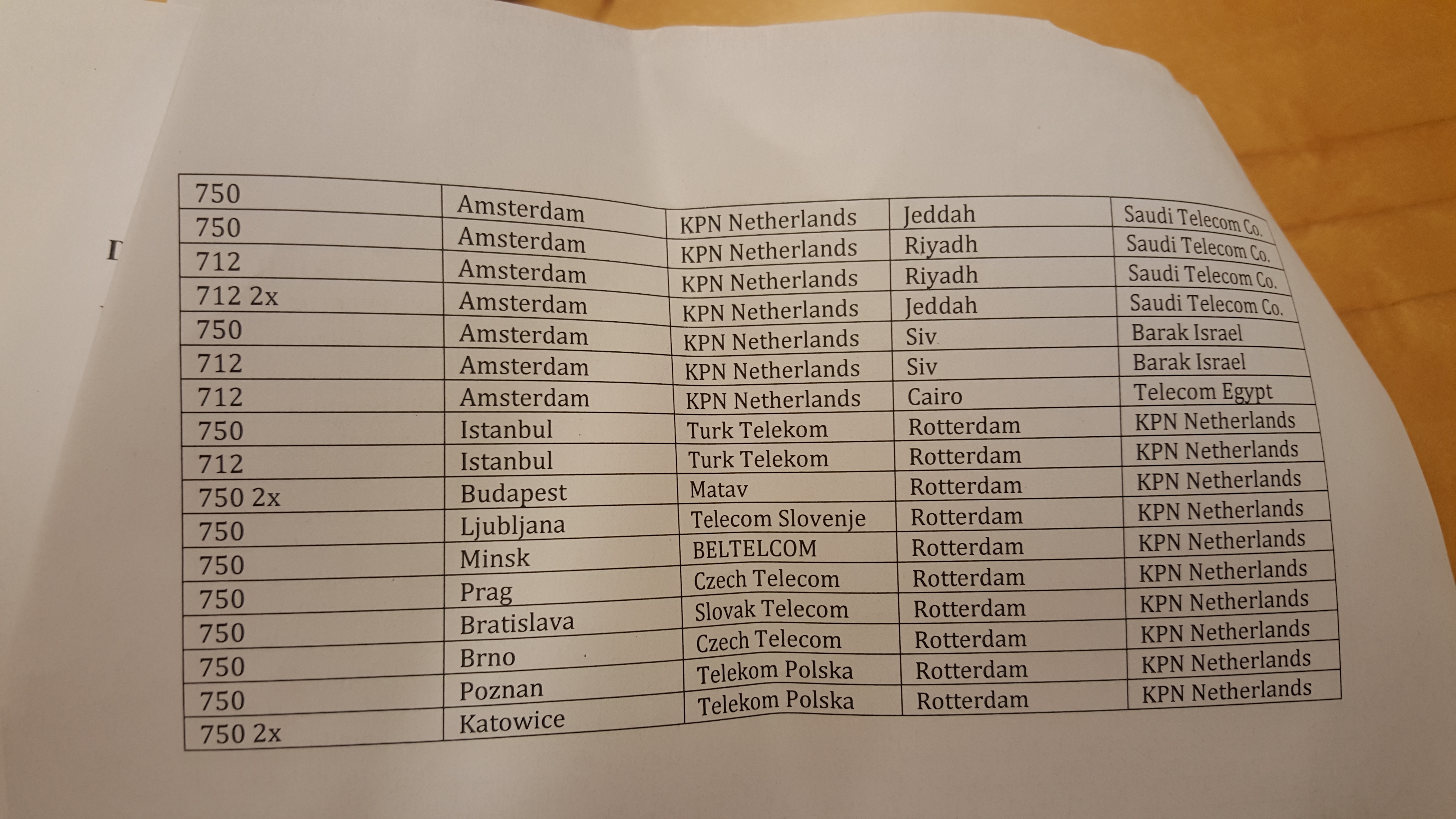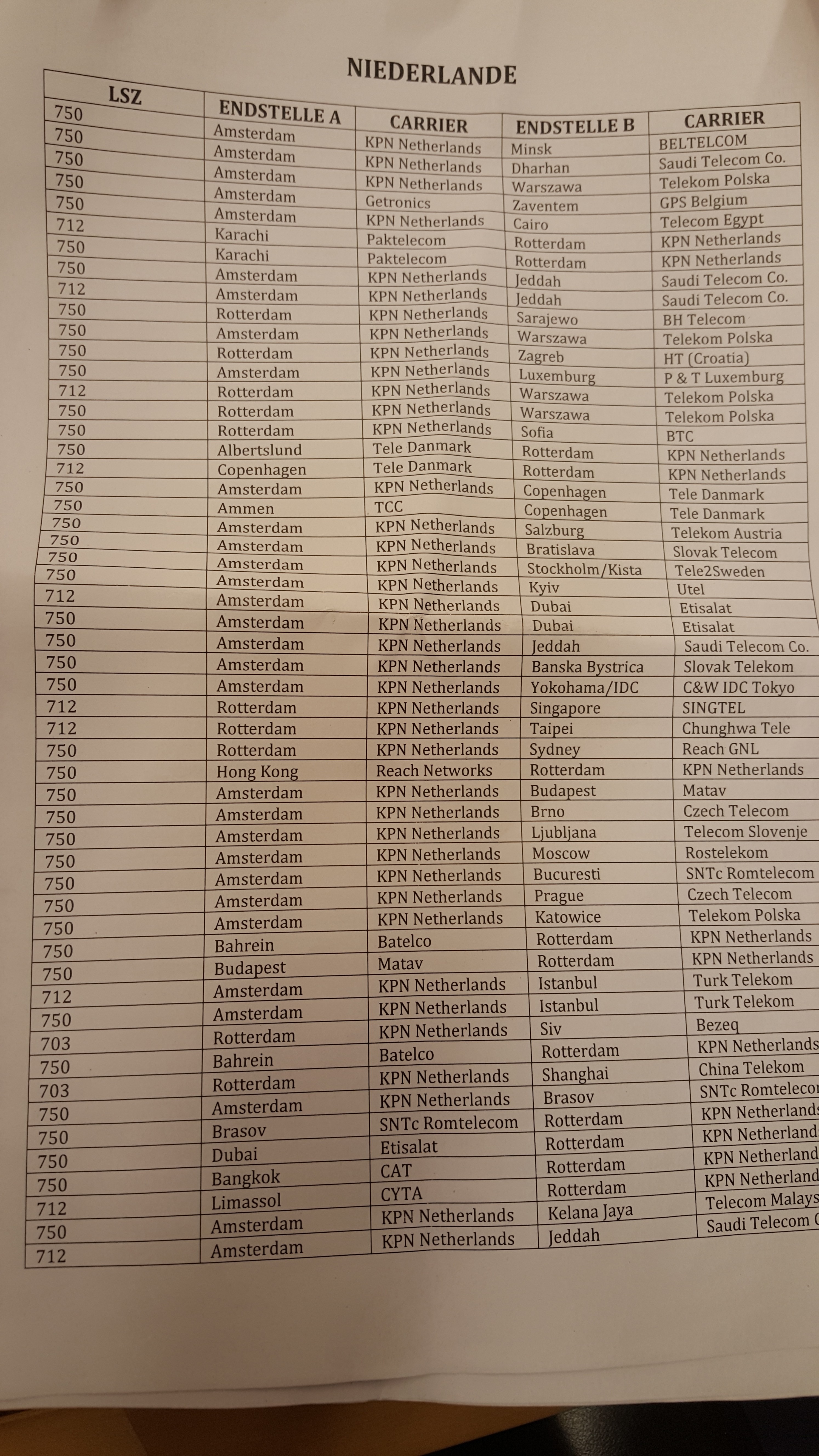 Uit het gelekte document (deel 1, deel 2) uit 2005 blijkt dat de BND een lijst had opgesteld met kabels waarin zij interesse hadden. De totale lijst is in handen van de Oostenrijkse parlementariër Peter Pilz, maar het deel wat betrekking heeft op Nederland is nu openbaar. Op de lijst staan 71 kabels met Nederlandse oorsprong of bestemming, op één na allemaal van KPN.