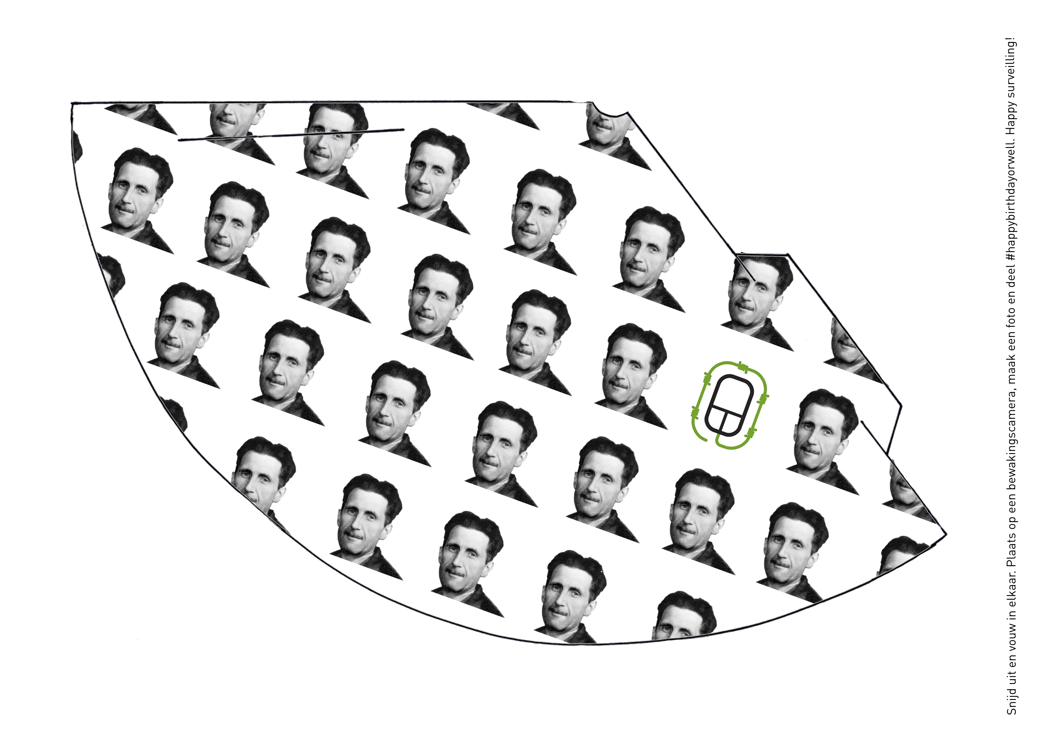 - En… feesthoedjes natuurlijk! Die hebben we alvast voor je gemaakt. Kies uit drie George Orwell/Bits of Freedom-themed modellen en download ze hieronder: