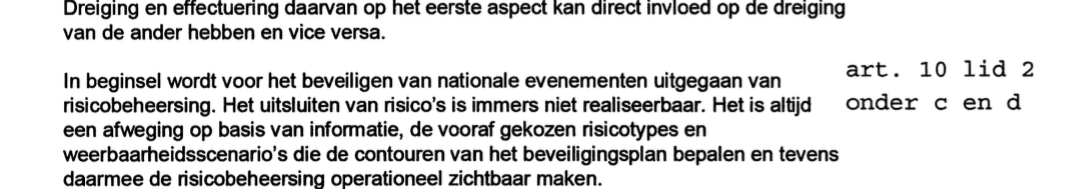En hoe zou toch het opsporingsbelang geschaad kunnen worden als bekend wordt dat de politie bij de beveiliging van grote evenementen ‘in beginsel uitgaat van risicobeheersing’ omdat “het uitsluiten van risico’s immers niet realiseerbaar [is]”?