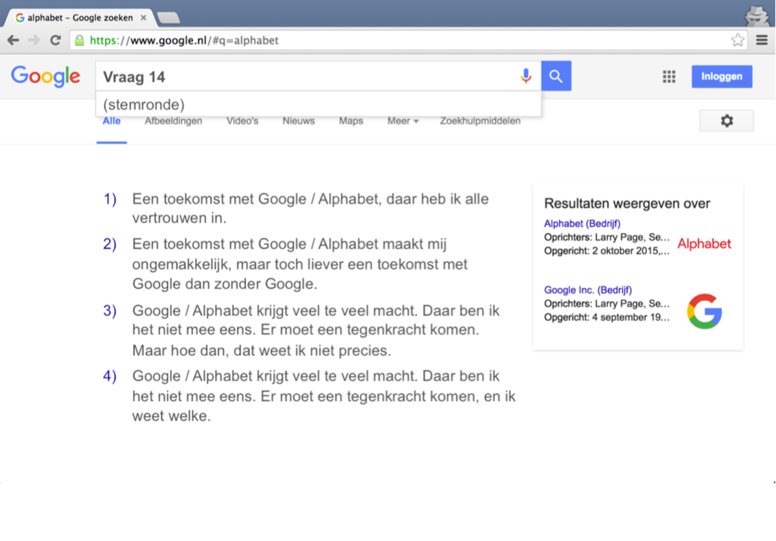 Na de bewondering voor de enorme ambities en het gebruiksgemak van zoveel diensten, kwamen we langzaam bij het punt waarop Luyendijk de aanwezigen in de zaal de vraag stelde of we eigenlijk wel op ons gemak zijn met de positie die Google / Alphabet lijkt te gaan hebben in onze toekomst.