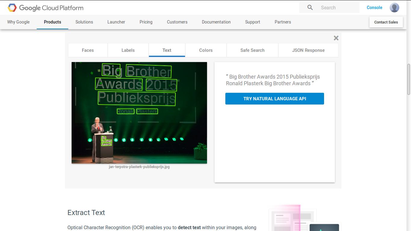 Google levert inmiddels Optical Character Recognition diensten op afroep. Voor een paar dollar per 1.000 foto’s, kijken de systemen van Google naar je plaatje en vissen de tekst eruit. Hier ziet Google bijvoorbeeld wie vorig jaar de publieksprijs won.