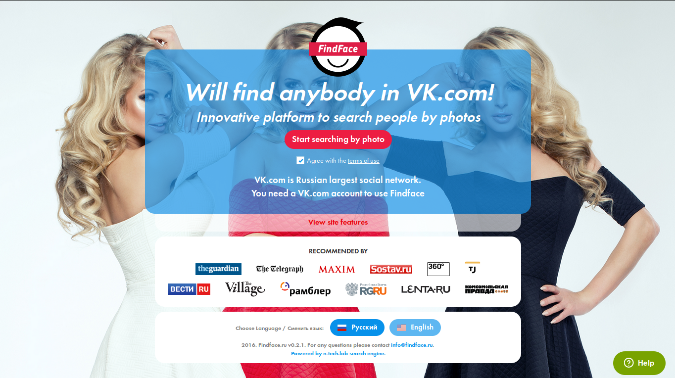 FindFace geeft je de mogelijkheid om aan de hand van foto’s van mensen te zoeken binnen VK naar hun profielen.