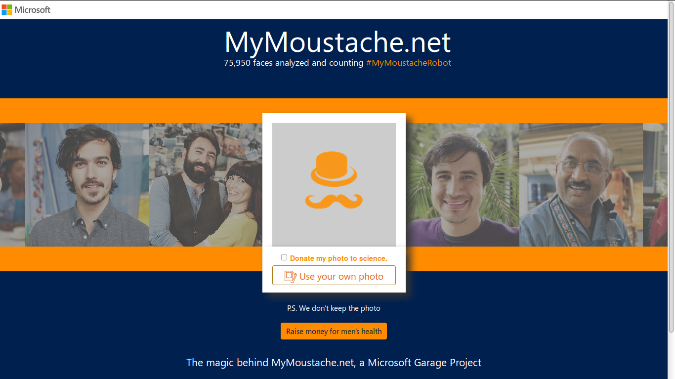 Het is natuurlijk ‘movember’ op dit moment, dus Microsoft heeft een herkenningsdienst voor snorren opgezet. Je kunt daarmee dus je steun aan de gezondheid van mannen kwantificeren. Ik heb dat toch even snel voor mezelf getest.