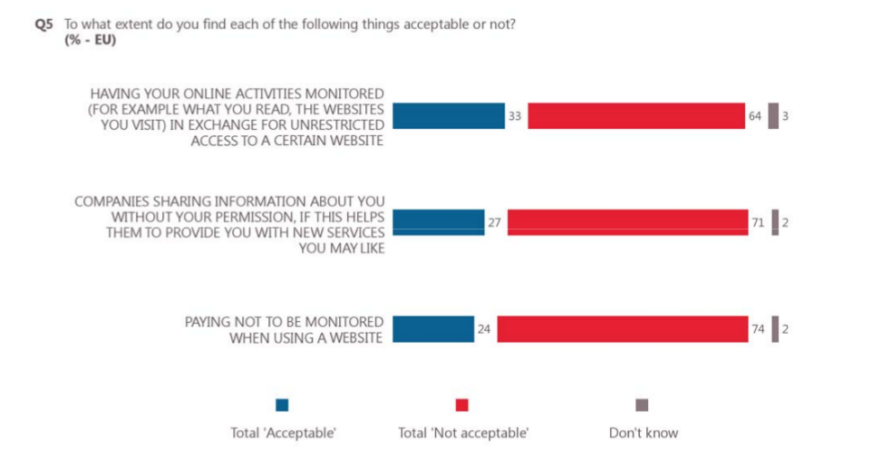 De vraag die we ons moeten stellen is: vinden we het oké dat we ons gedwongen digitaal laten uitkleden, analyseren en beïnvloeden? Wij vinden van niet en ook een ruime meerderheid van burgers in Europa denkt er zo over:
