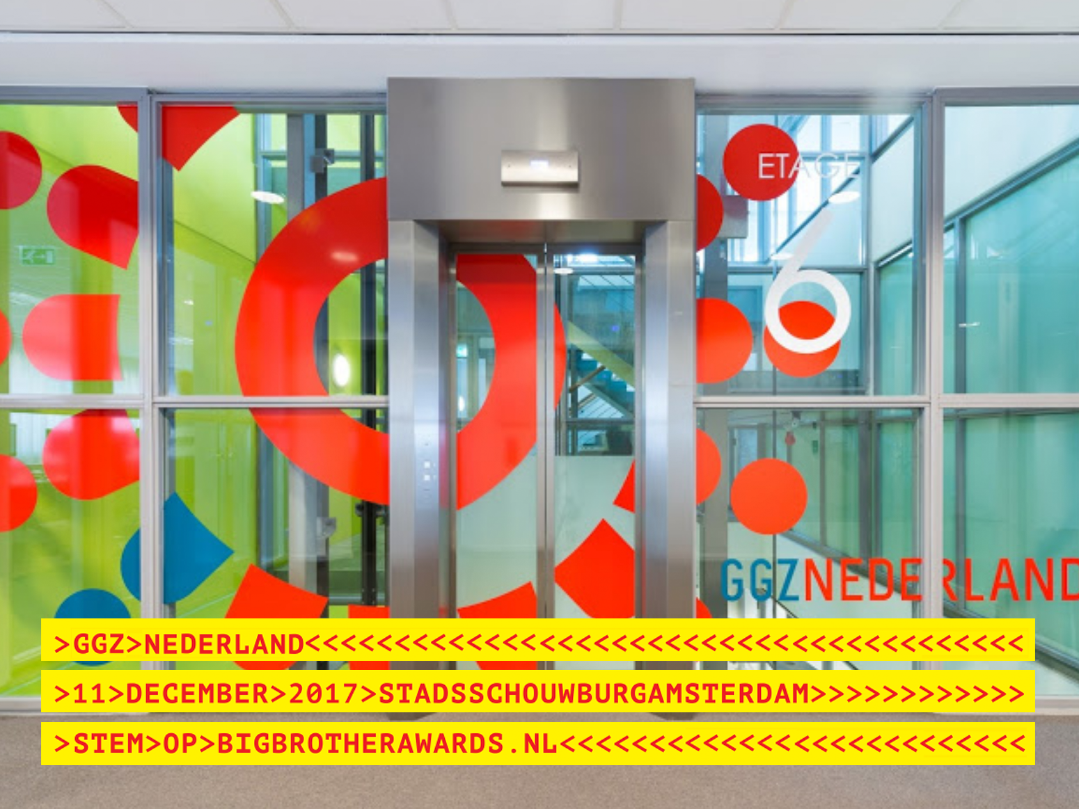 GGZ Nederland is genomineerd voor de Big Brother Awards Publieksprijs. Ze krijgt de nominatie vanwege haar oproep om, zonder toestemming, privacy-gevoelige gegevens van patiënten te delen met een derde partij.