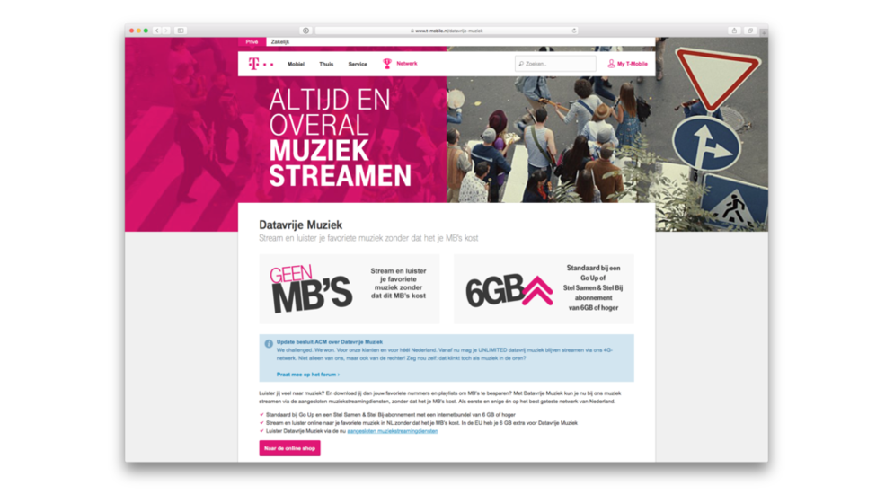 Maar nu de regels anderhalf jaar van kracht zijn, is goed te zien hoe providers de grenzen opzoeken. In Nederland is dat gelukkig nog best beperkt. Op dit moment biedt alleen T-Mobile een abonnement aan waarbij bepaalde diensten worden voorgetrokken. Daarmee beperkt T-Mobile de vrijheid van de internetgebruiker en ondermijnt ze innovatie. Bits of Freedom heeft daarom de toezichthouder ACM gevraagd “handhavend op te treden”. Die procedure loopt nog.