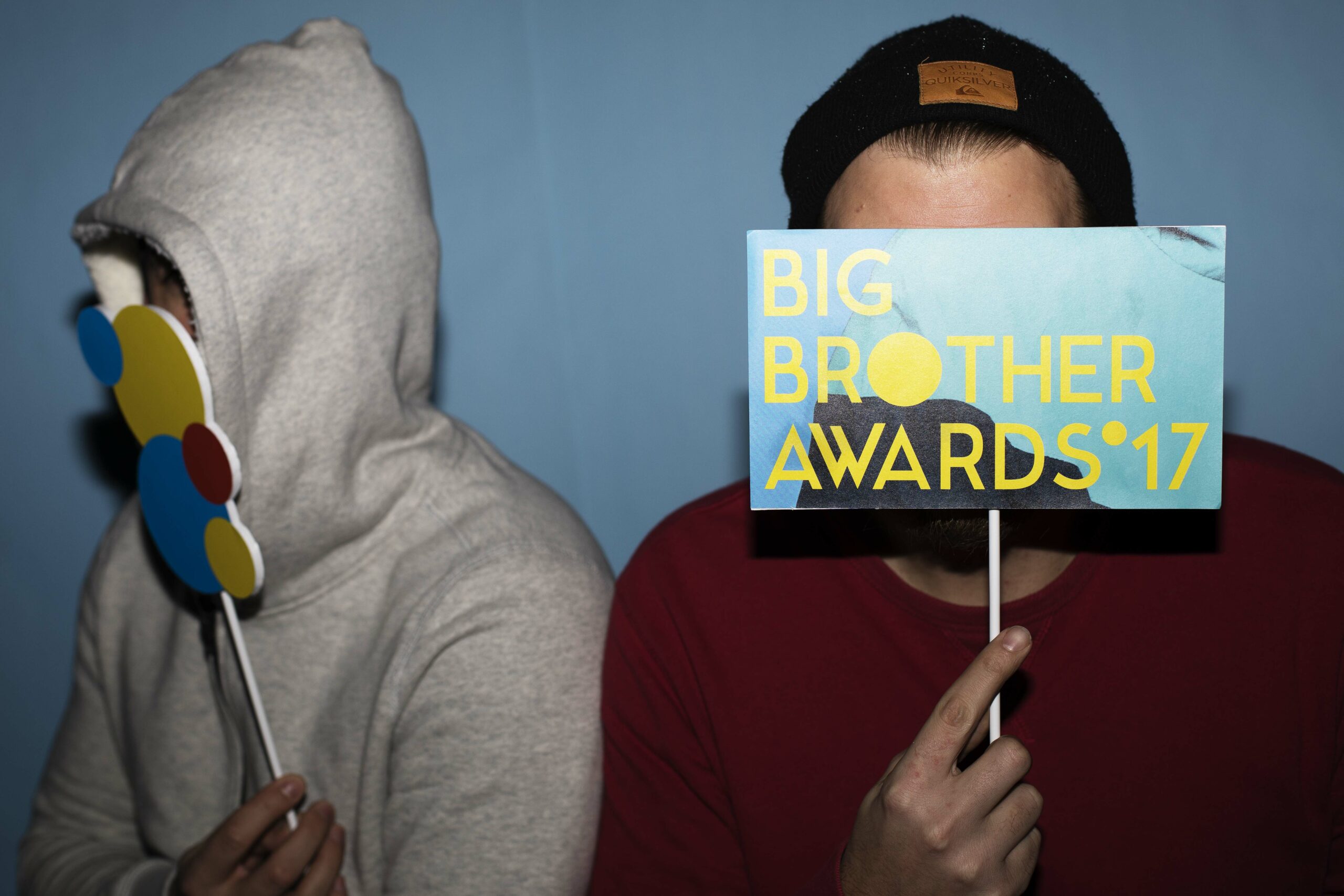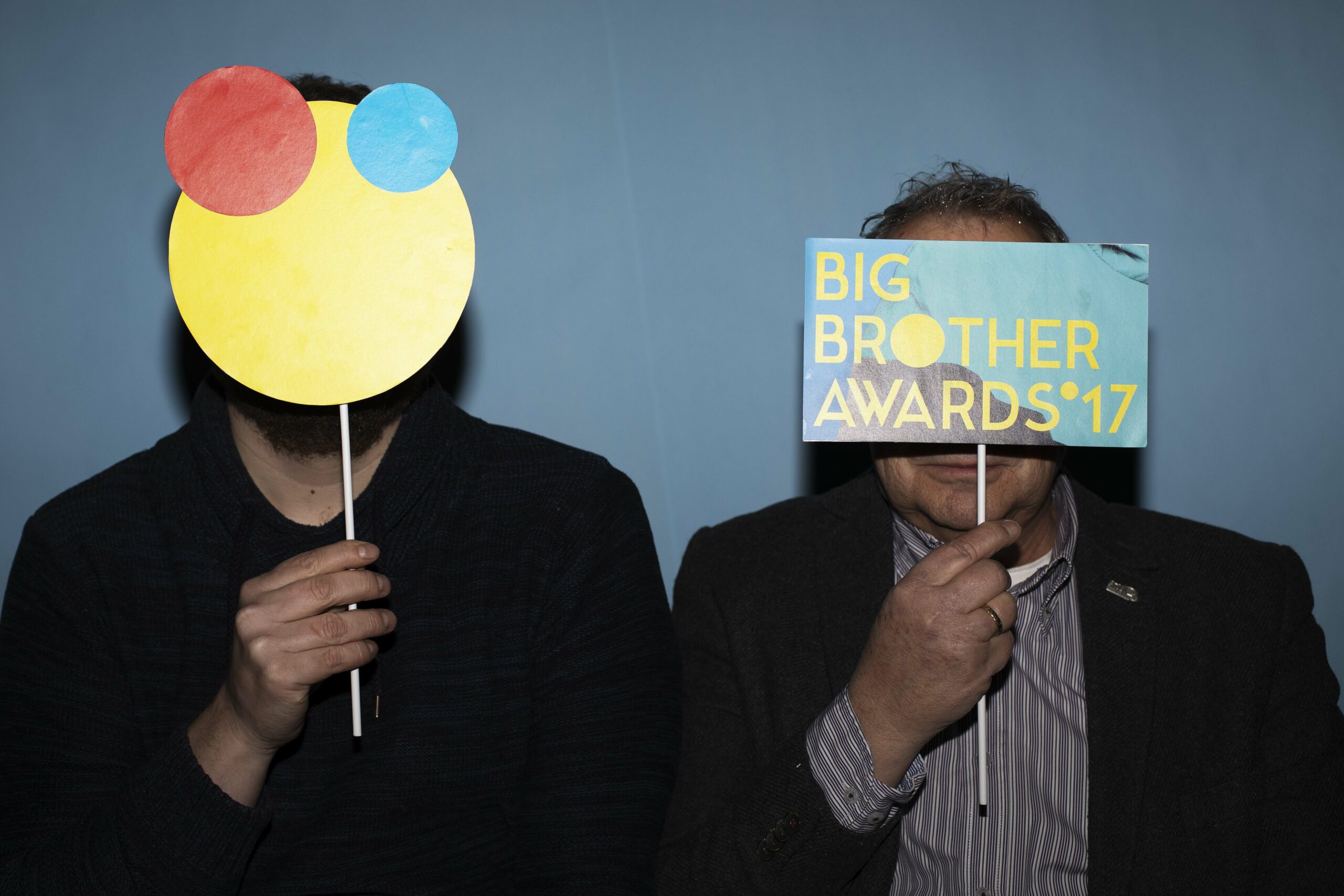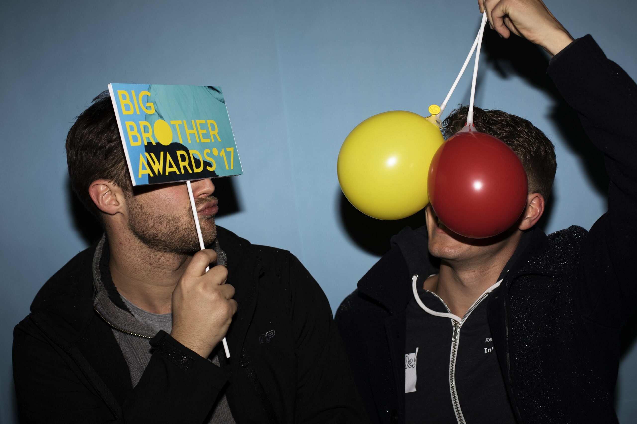 In 2017 kon je tijdens de borrel van de Big Brother Awards anoniem op de foto. -