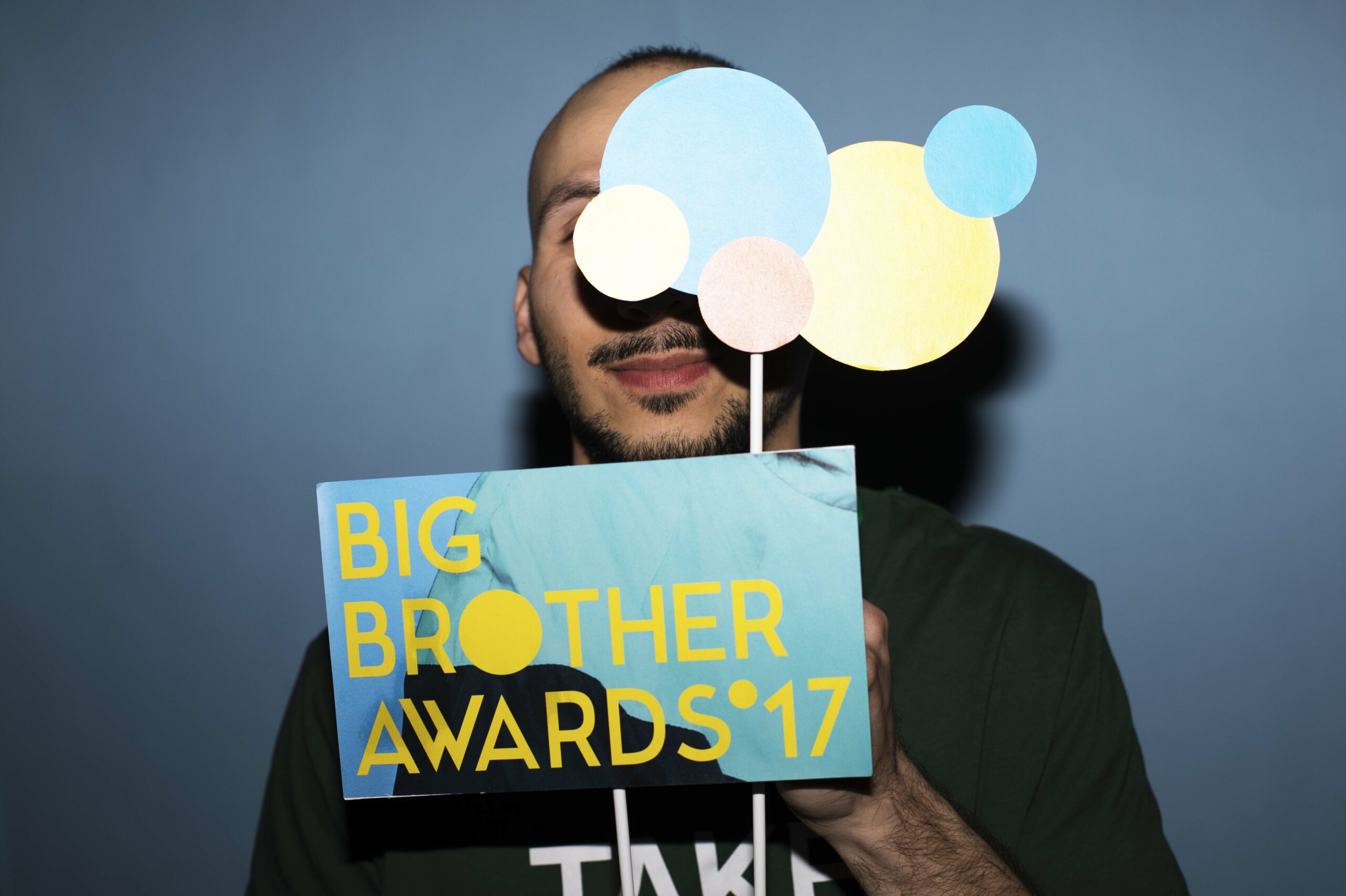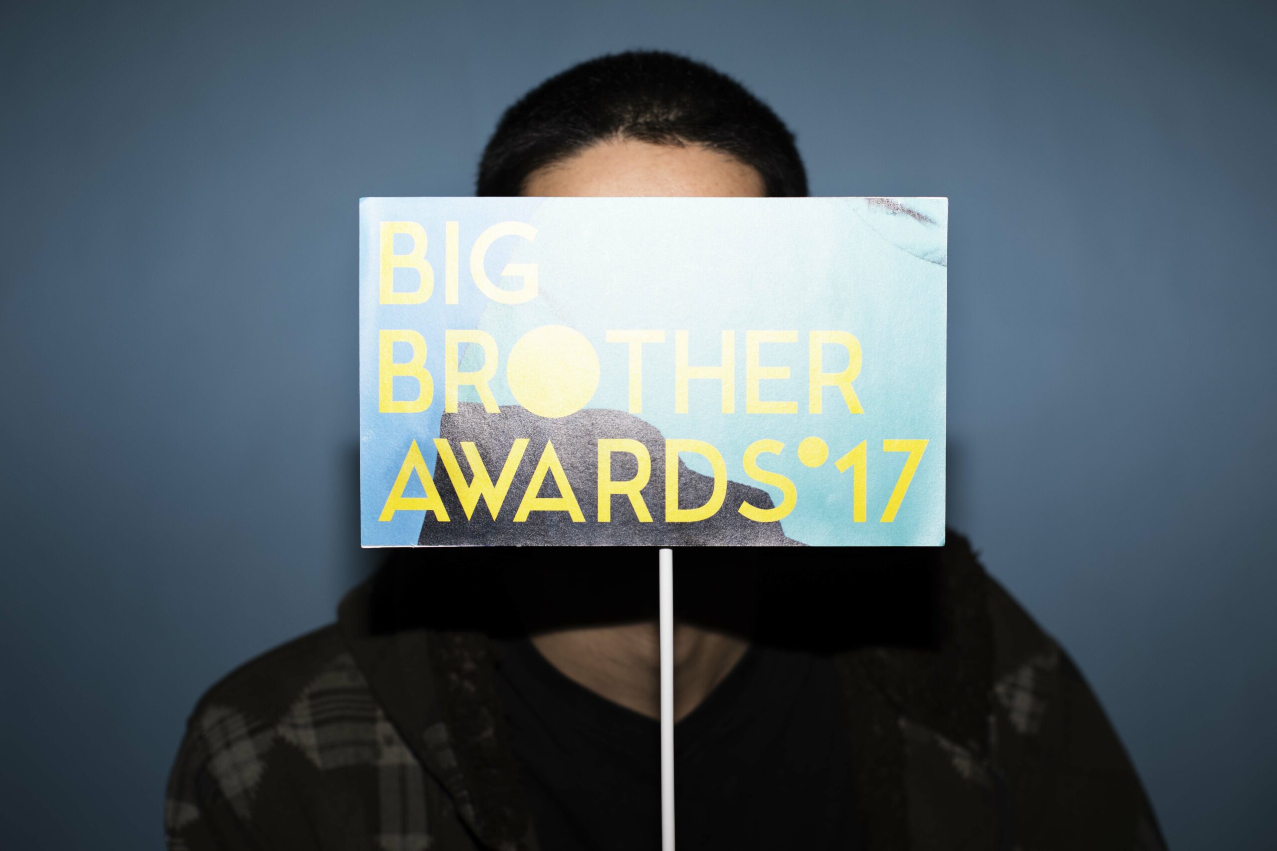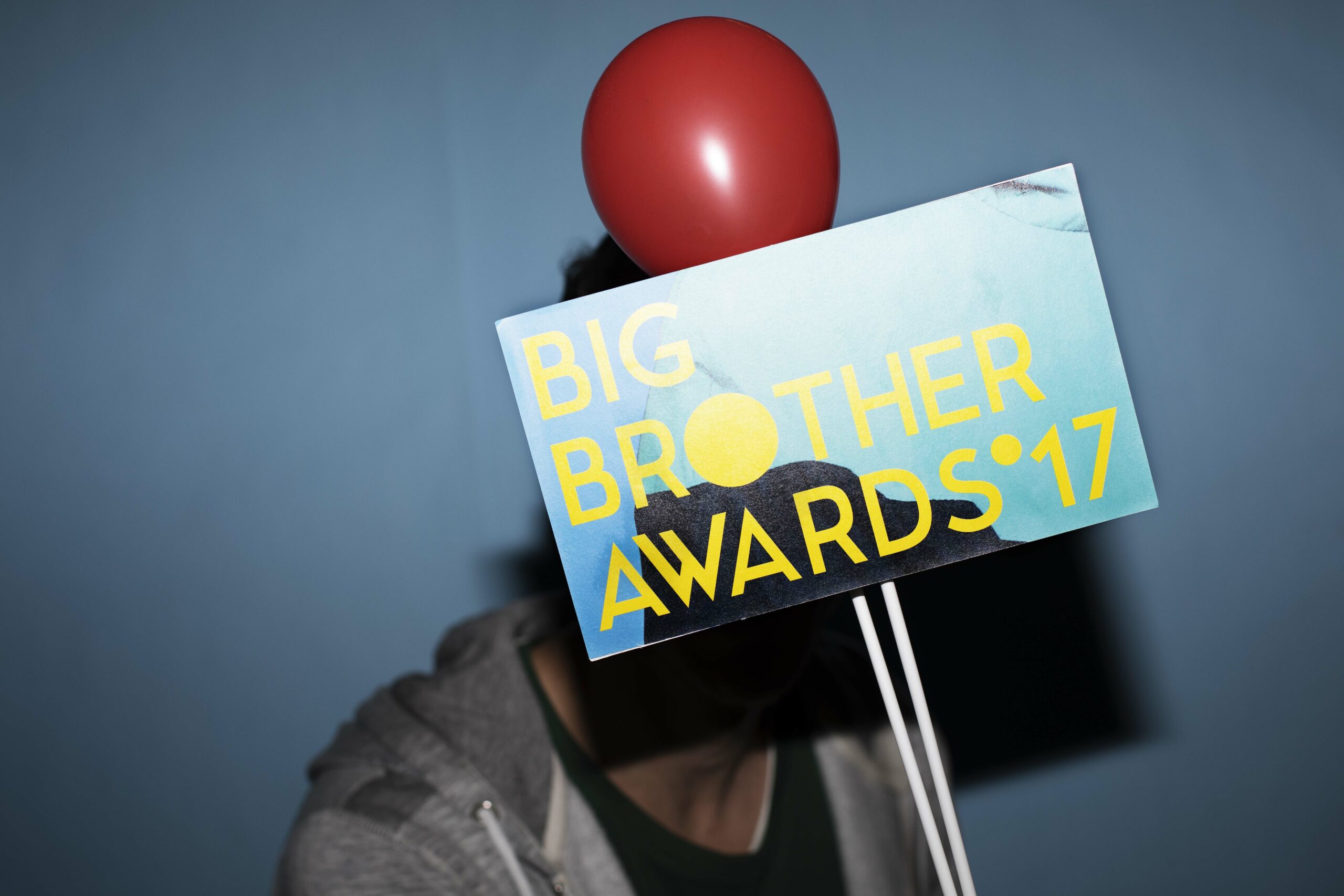 In 2017 kon je tijdens de borrel van de Big Brother Awards anoniem op de foto. -