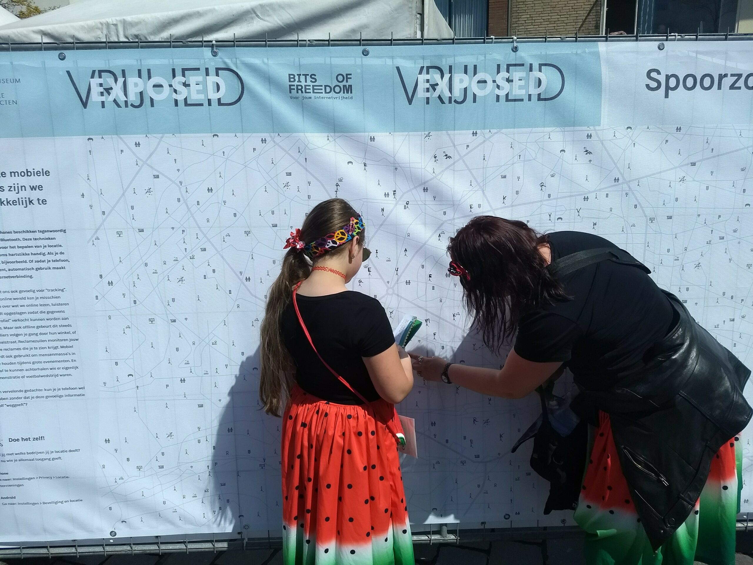 Vandaag kon je op alle 14 Bevrijdingsfestivals in Nederland vrijwilligers van Bits of Freedom vinden bij de installatie "Vrijheid EXPOsed". Vrijheid EXPOsed is een informatiezuil en serious game in één. Spelenderwijs vinden bezoekers hun weg uit de wanorde van cookiemeldingen, krantenkoppen en wel-of-niet privacyvriendelijke apps. Leren over privacy en communicatievrijheid online? Zo ziet dat eruit.