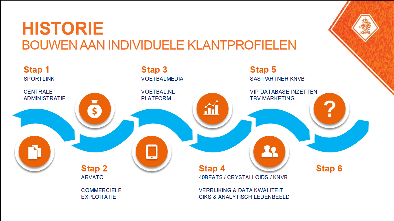 Nieuwsuur laat in een onderzoek zien hoe ver de KNVB gaat in het verkopen van persoonlijke gegevens. De redactie kwam in bezit van de presentatieBekijk de volledige PDF van de presentatie die de KNVB gaf op de ‘datadag’ van de branchevereniging voor data driven marketing. In de vorm van een matige voetbalmetafoor word je meegenomen in de geschiedenis van hoe de KNVB bouwt aan individuele klantprofielen: