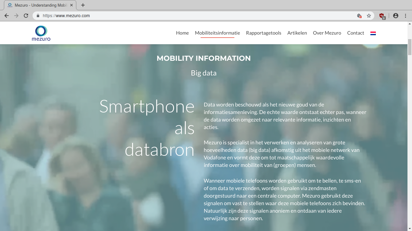 Het vinkje om geanonimiseerde gegevens beschikbaar te maken voor analyse staat standaard aan. Het bleek dat mijn geanonimiseerde data werd gebruikt door Mezuro, een bedrijf dat gespecialiseerd is in “mobility information”.