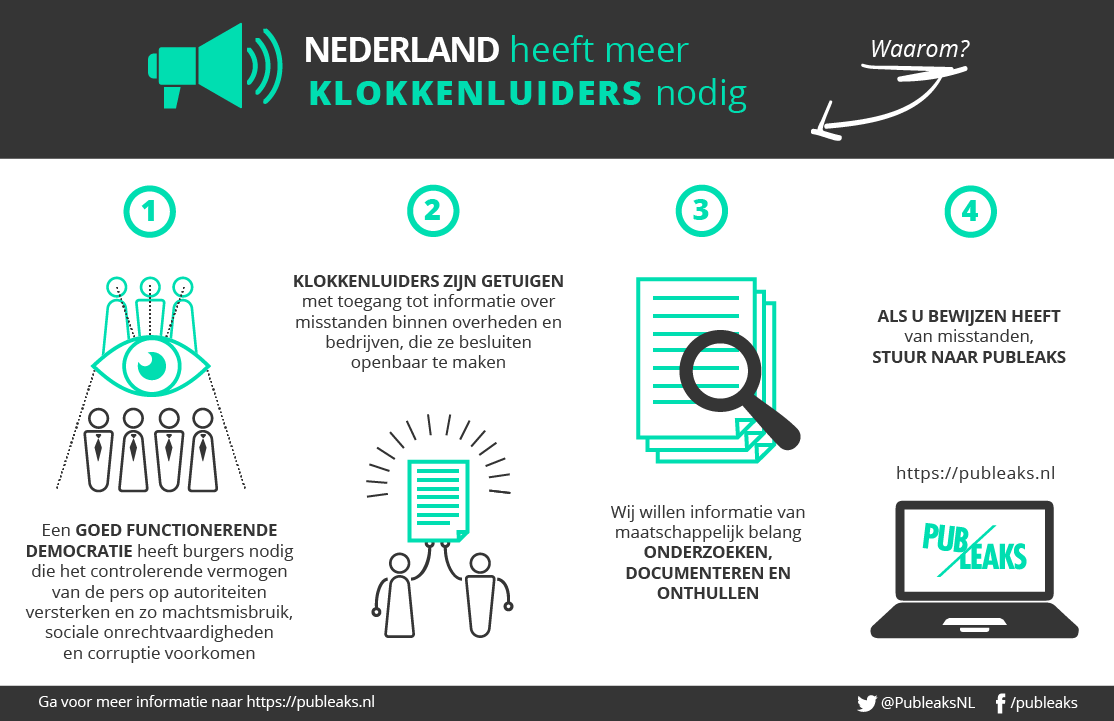 In iedere samenleving vinden misstanden plaats die soms alleen aan het licht komen dankzij klokkenluiders. Digitale communicatiekanalen hebben het delen van informatie een stuk makkelijker maar helaas ook onveiliger gemaakt. Overheden en criminelen gebruiken het internet steeds vaker om journalisten en hun bronnen af te luisteren en op die manier te controleren. Via het platform Publeaks kunnen klokkenluiders wél veilig en anoniem informatie delen met de pers.