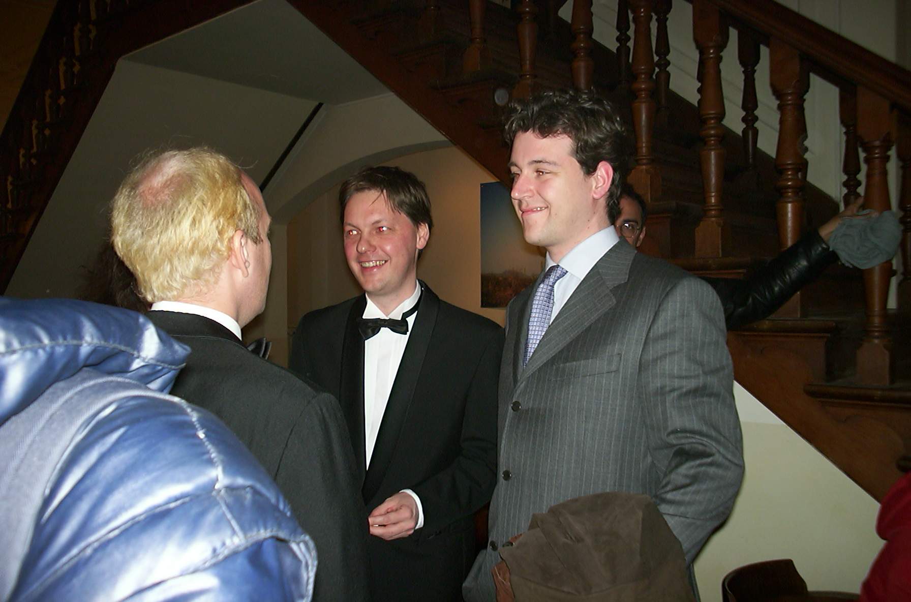 Foto uit het archief van Karin Spaink: de eerste Big Brother Awards 2002 met jurylid Lodewijk Asscher en medewerker Maurice Wessling.