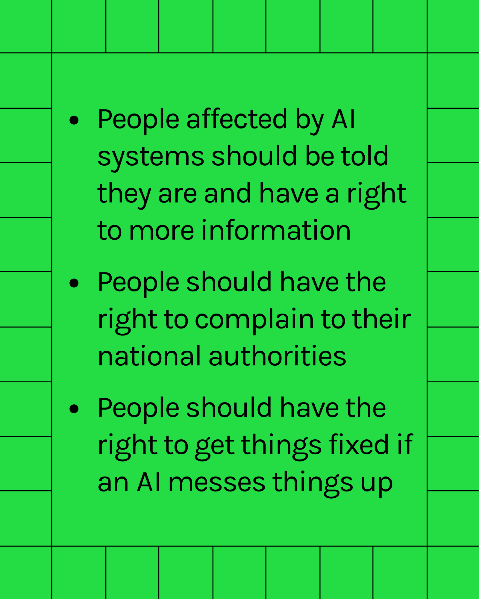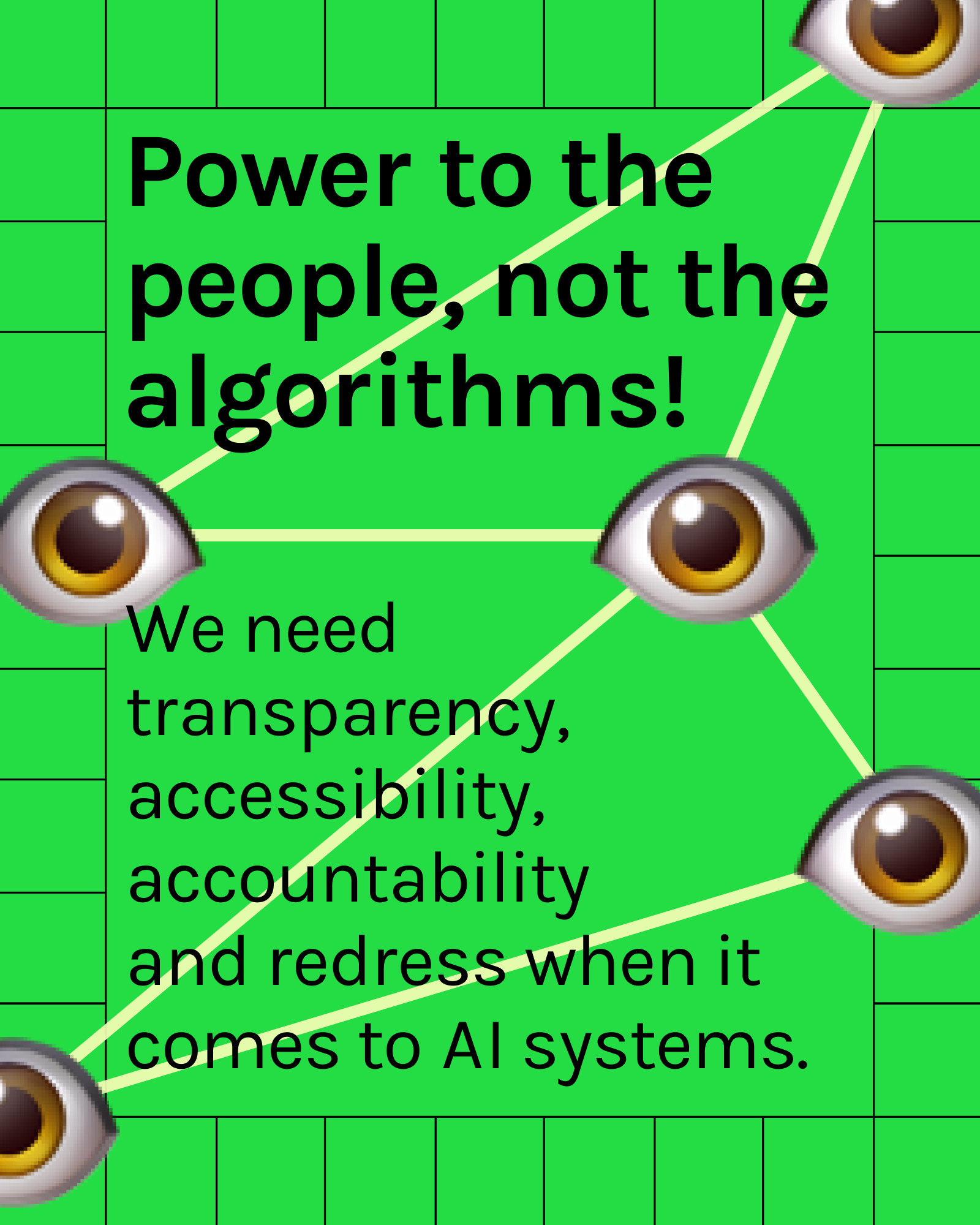 We need transparancy, accessibility, accountability and redress when it comes to AI systems. Tag the lawmakers you follow to make them take action