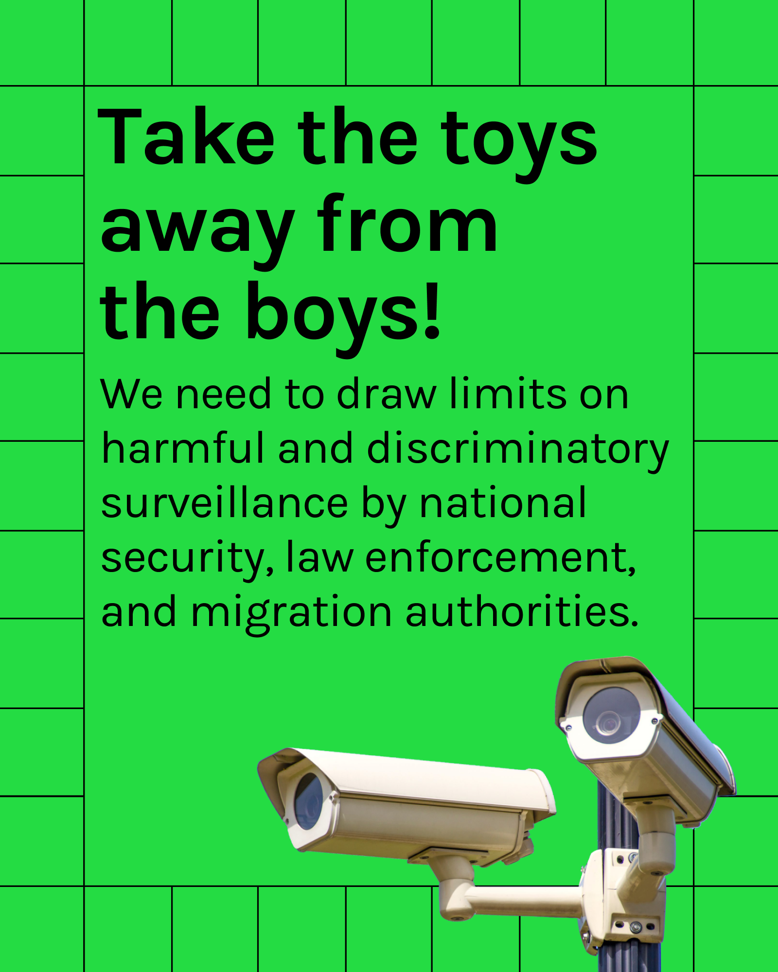 We need to draw limits on harmful and discriminatory surveillance by national security, law enforcement, and migration authorities. Tag the lawmakers you follow to make them take action