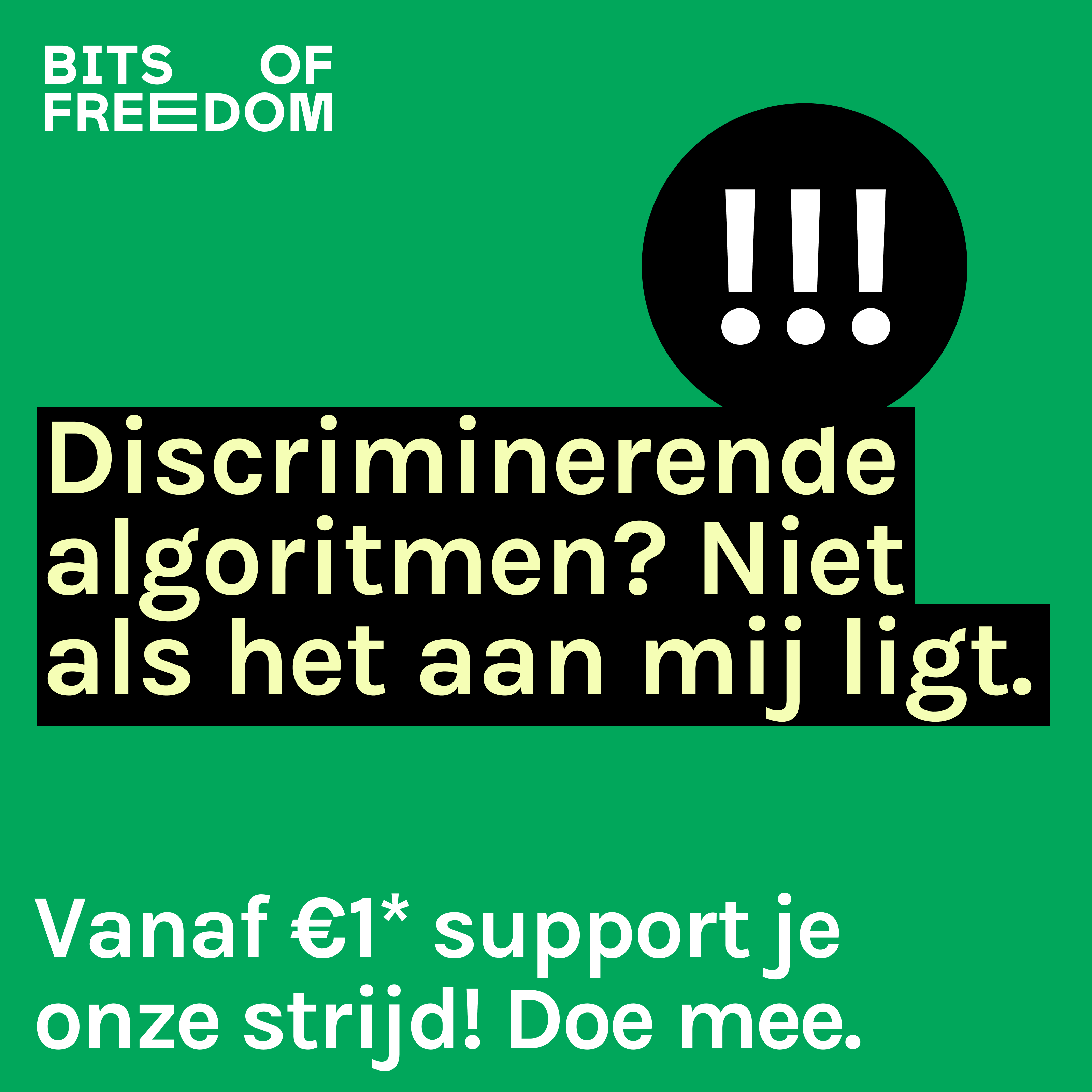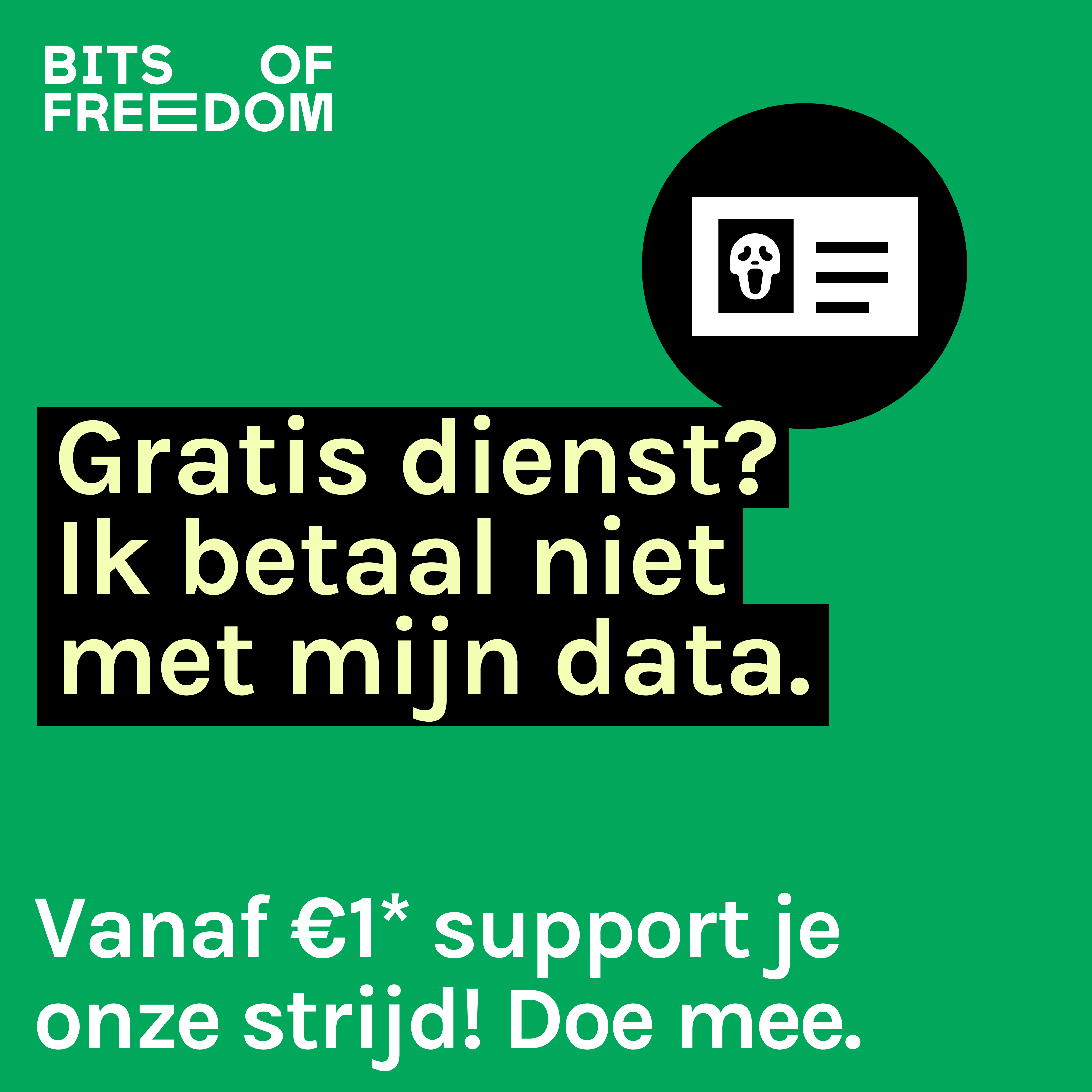 Bits of Freedom adverteert principieel niet via sociale media of websites die gebruik maken van gepersonaliseerde advertenties. Daarom hebben we jouw support extra hard nodig wanneer het aankomt op onze zichtbaarheid. Zet jouw digitale bereik in om je uit te spreken en de boodschap te verspreiden!