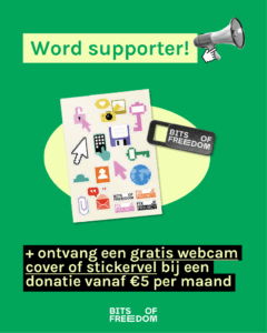 Door mijn bijdrage ondersteun ik Bits of Freedom, dat kan maandelijks of eenmalig.