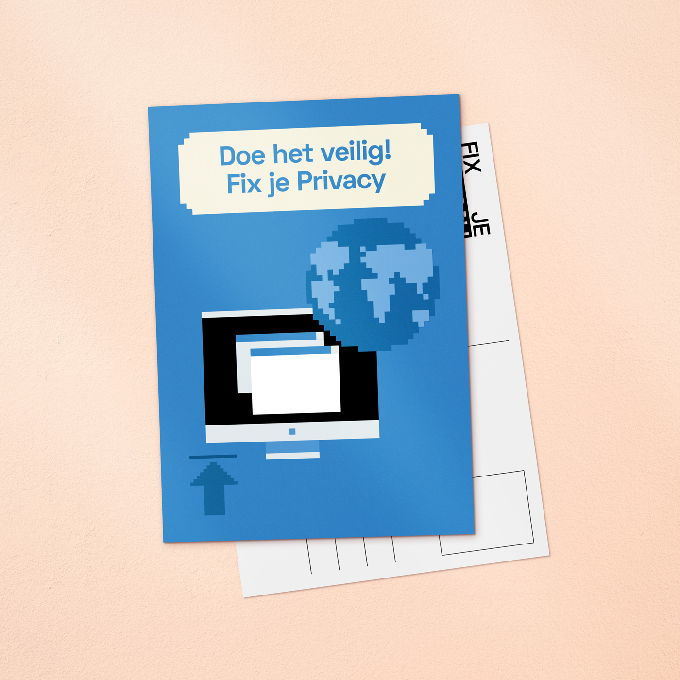 Fix it! Show it! Dit pakket is de reminder voor jezelf en anderen om aan de slag te gaan met online privacy. Je steunt ons werk en je helpt jezelf en anderen aan een veilig online leven.