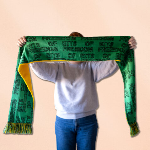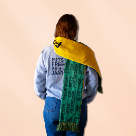 Als supporter van Bits of Freedom steek jij met liefde je nek uit. Daarom is het extra belangrijk dat je nek ook lekker warm blijft. Er is geen betere manier om dit te regelen dan door het dragen van de Bits of Freedom Supporterssjaal XXL. Inderdaad extra, extra lang, want deze sjaal is maar liefst 180 centimeter van kop tot staart en is 17 centimeter breed.